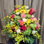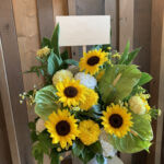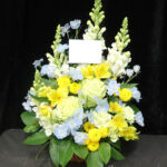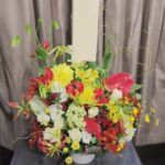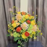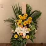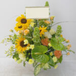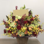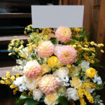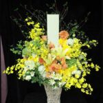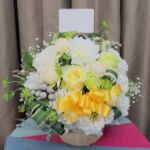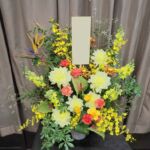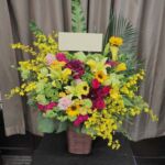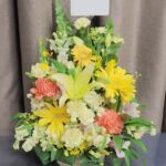もし設置場所が店内や作品の傍になる場合は、作品や商品よりもお花が目立ちすぎてしまう事があるので、黄色以外の色をおすすめしております。