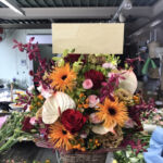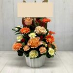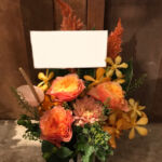 最近ではアンティーク調な雰囲気のフラワーギフトを暗すぎる印象にしない為に、ポイントでオレンジ系を足すという方法でも活用されています。