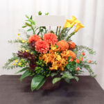 - オレンジ+黄緑・・・地味すぎないナチュラルな感じのお花になります
