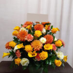 その為、ハナテラスではオレンジに何か他の色のお花を合わせたデザインをおすすめしております。