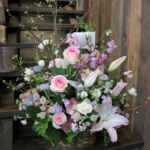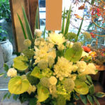 その為、白をメインに花を作ると、清潔感のある華やかな仕上がりでお祝い花をお作りする事ができます。
