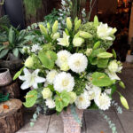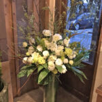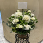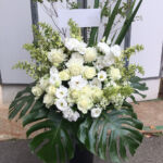 以前はご葬儀用のお花というイメージが強かった白色のお花ですが、最近は様々な形状の白いお花が流通するようになり、お祝いのお花でも白色メインのデザインのご要望が増えてきています。